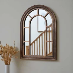 The chic, timeless framed design of this mirror is what makes it so perfect for use anywhere in or out of the home, whether that be in a lounge or dining room, or on a wall outside. The arched shape gives for a classy look that will fit perfectly into a wall full of picture frames, just as beautifully as it slots into a wall covered in vines and flowers.